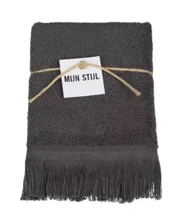 De handdoek heeft franjes wat hem net even anders dan andere handdoeken maken. Ze zijn gemaakt van 100% katoen in Portugal en hebben een afmeting van 40 x 60 cm. Verkrijgbaar in de kleuren ecru en donker grijs.