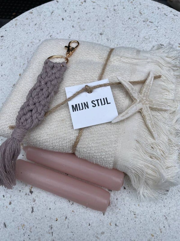 In je nieuwe huis bijvoorbeeld. Dan kan je dit gastendoekje en te leuke sleutelhanger goed gebruiken! Kies jij voor de kleur grijs of ercu?